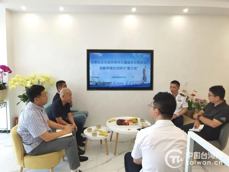 中国台湾网7月1日讯 近日,在南安市人民政府台湾事务办公室指导下,泉州南安海事处服务台胞台企创新举措交流研讨“星沙龙”暨处长政务接待日活动在台胞台企服务站成功举办。来自运营对台小额贸易船舶的金门航运公司、船务代理公司和落户南安的台企代表齐聚一堂,共商服务台胞台企新举措,探索两岸融合发展新路径。