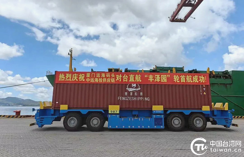中国台湾网7月13日讯 11日上午10时许,从台湾台北港归来的“丰泽园”轮缓缓停靠在厦门远海码头。在短暂休整之后,“丰泽园”轮于当天下午搭载近200万美元出口货值的跨境电商货物再次出发前往台北港。