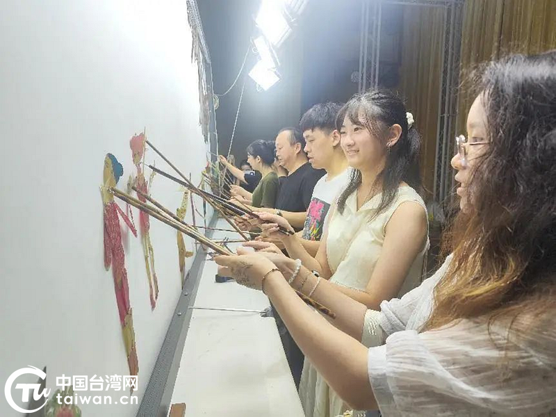 两岸学子体验皮影戏表演。(中国台湾网发)