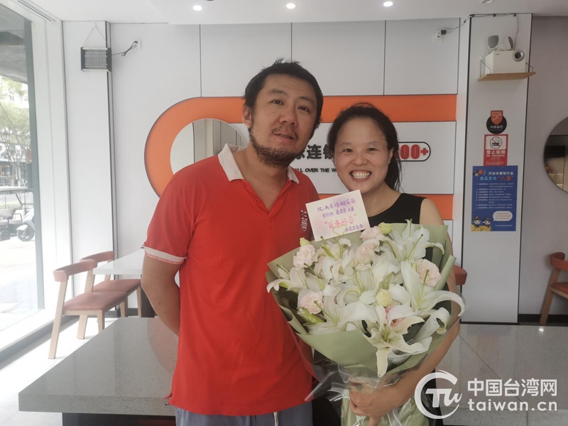 中国台湾网8月12日讯 今年的七夕节,两岸婚姻家庭廖钧凯、蒋孟亭夫妻收到了一份特殊的礼物——开封市示范区台办为他们定制的象征婚姻幸福长久的百合花束。
