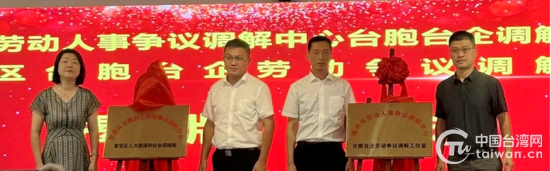中国台湾网8月16日讯 近日,“福州市劳动人事争议调解中心——台胞台企调解工作室”和“晋安区台胞台企劳动争议调解中心”揭牌仪式在福州市晋安区两岸社区交流中心隆重举行。标志着该区在构建和谐劳动关系、服务台胞台企方面迈出了坚实的一步。