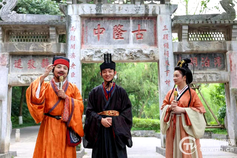 活动中,一群穿着汉服、满脸笑意的学生吸引了游客的注意。青年作家、汉服研究者周渝、侯佳明身穿汉服,以“遥想诸葛孔明——在古隆中爱上三国汉服”为主题,向台湾学生讲述诸葛亮的传奇故事,并介绍汉服的发展史和文化特色。