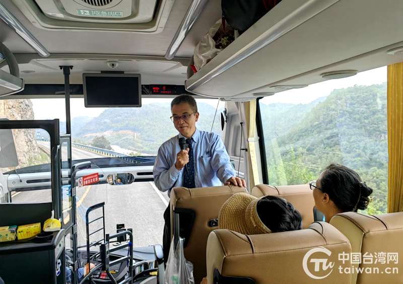 余严尊教授在车上与台青分享交流(六盘水市台办供图)