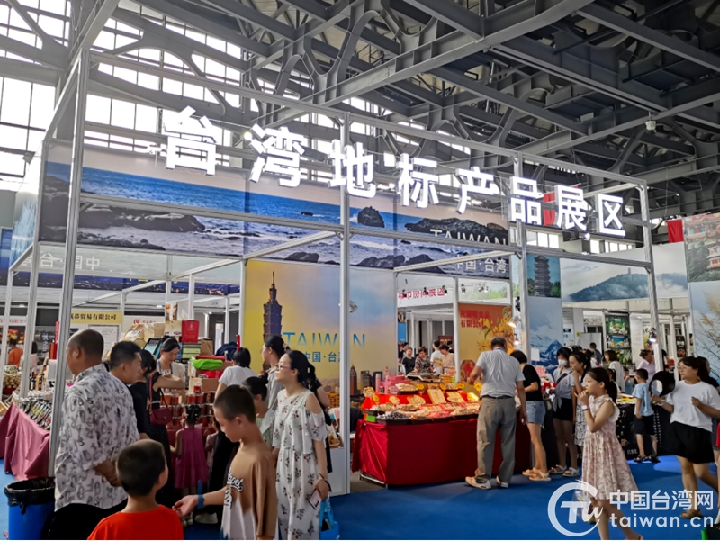 恰逢周末,D馆特色产品展馆内台湾地标产品展区的摊位挤满了顾客。台湾凤梨酥、台南手工牛轧糖、台湾太阳饼、白柚椮、巧克力等琳琅满目的特色产品整齐地排列在展位上,看着让人食欲大增。