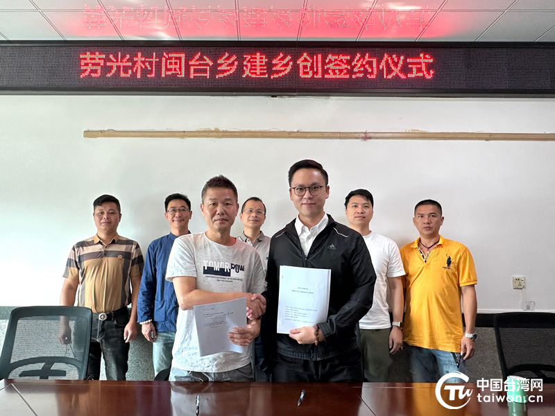 中国台湾网11月11日讯 近日,福建南安水头镇劳光村党总支书记洪火炳与台青团队鑫门町(厦门)文旅有限公司总经理林文皓共同签署“劳光村闽台乡建乡创合作项目”,将依托泉厦金地缘相近、血缘相亲、文缘相承、商缘相连、法缘相循的五缘优势,整合翔安区锄山乡村党校、妙高山佛国寺台式茶园等文旅资源,建设“农禅并重、劳动光荣”的两岸农禅文化产学合作示范村。