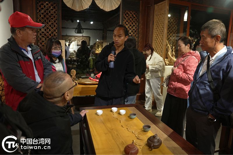 “云筑梦乡·两岸相盼”两岸培训交流团走进天艺园木雕博物馆。(中国台湾网发)