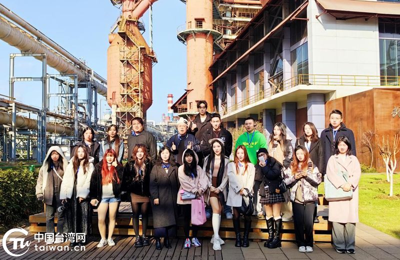 台湾青年自媒体博主一行在武钢一号高炉国家工业遗址公园合影。(中国台湾网发)