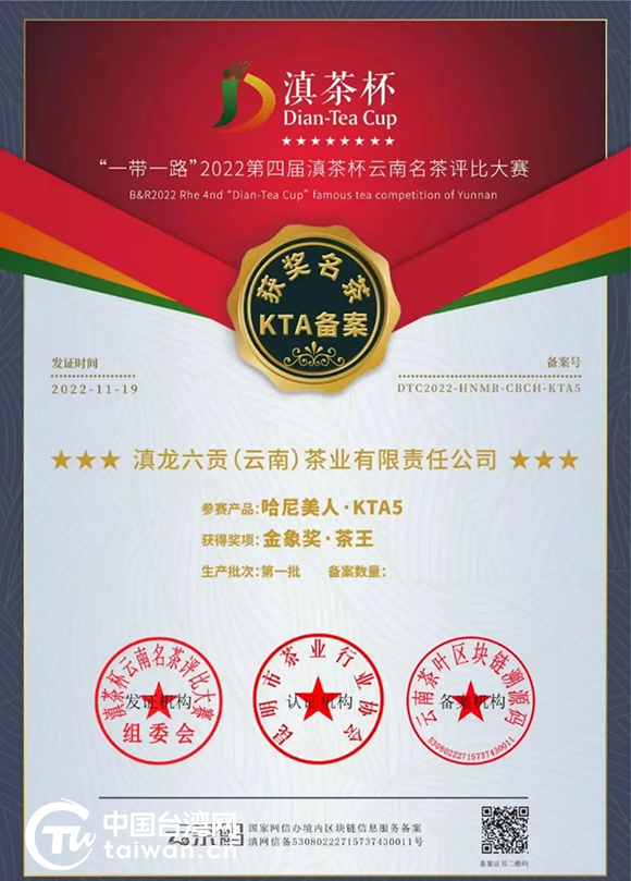 2022年邱宽武的“哈尼美人茶”荣获云南省名茶证书