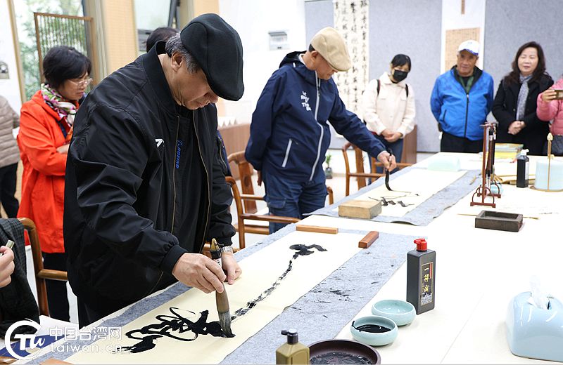 台湾书画家们现场挥毫泼墨。(中国台湾网发)