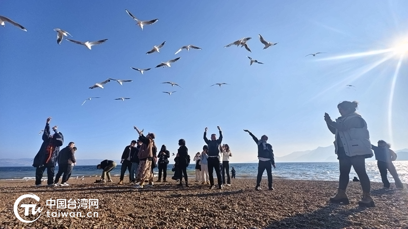 两岸青年在抚仙湖与鸥共舞。(中国台湾网发)