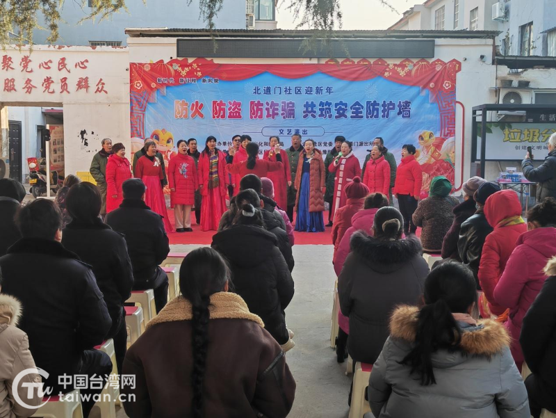 中国台湾网1月6日讯 为进一步增强辖区台胞台属的安全防范意识,近日开封市龙亭区台办联合北道门派出所在北道门社区共同举办“防火、防盗、防诈骗,共筑安全防护墙”主题文艺汇演。