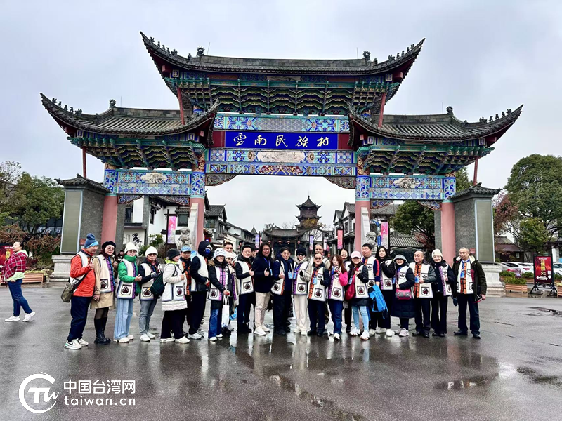 中国国民党中央委员暨党代表云南参访团成员一行参访云南民族村合影留念(中国台湾网记者 叶春禄 摄)