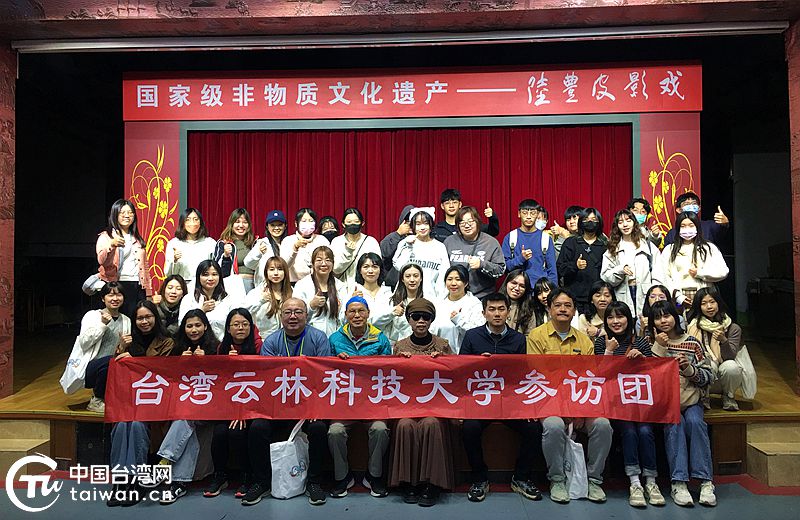 参访团一行在皮影戏传承基地合影。(中国台湾网发)