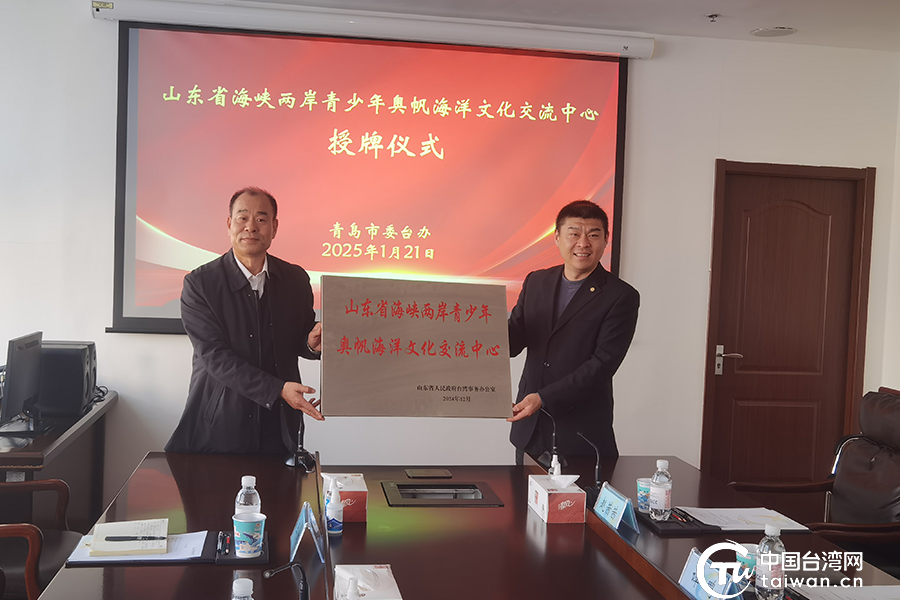 中国台湾网1月24日讯 1月21日,山东省海峡两岸青少年奥帆海洋文化交流中心授牌仪式在青岛旅游集团举行。青岛旅游集团总经理谭鹏、青岛市台办副主任赵磊等参加仪式并座谈交流。