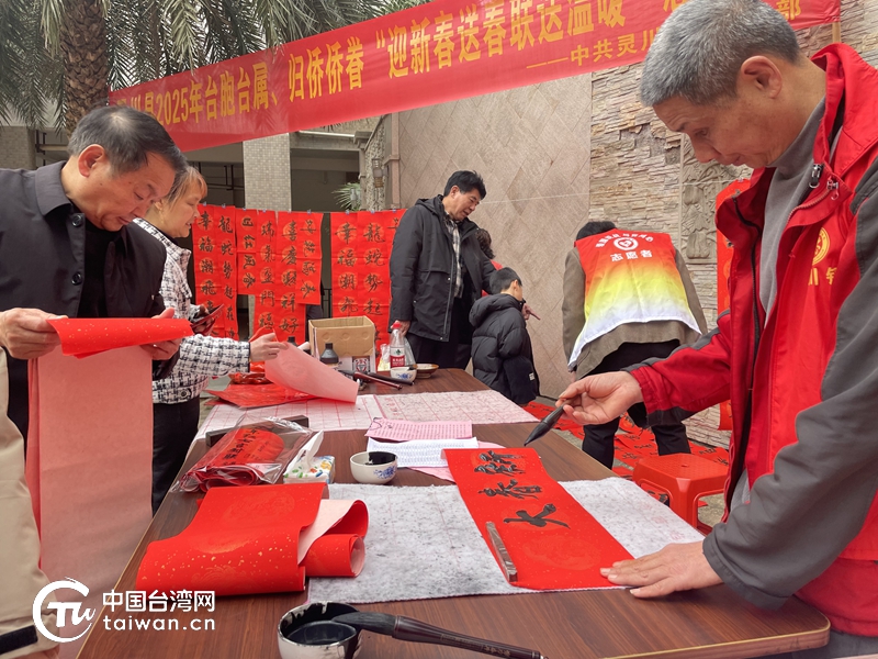在灵川县举行的2025年“迎新春送春联送温暖”慰问活动上,多名台胞台属与当地乡亲同写一副春联、共道一声祝福。大家以“蛇年”为主题,挥毫泼墨,笔走龙蛇,预祝乙巳蛇年“万事好成功”。“这字写得太漂亮了,手写的春联更有温度有意义!”台属秦女士拿着刚写好的春联开心地说道。同时,灵川县七彩社区还安排了义务问诊活动,提供中医把脉问诊、口腔检查等服务,帮助台胞台属免费测血压、血糖。