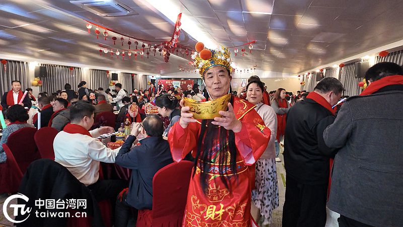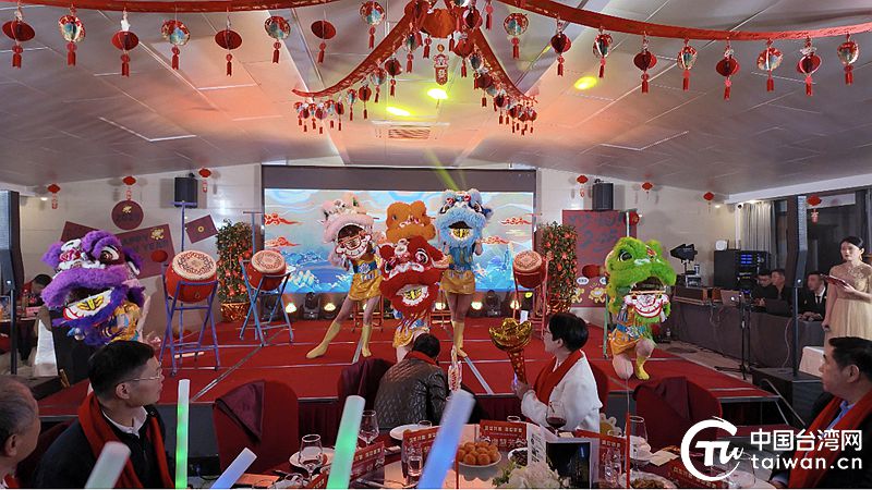 金狮喜庆闹春,“财神爷”现场送祝福,电音三太子欢乐喜庆,台青表演活力四射,大家热热闹闹围炉过大年。联欢活动中, 全场台胞台商同唱歌曲《两岸一家亲》,更是把喜庆团圆的氛围,推向了高潮。