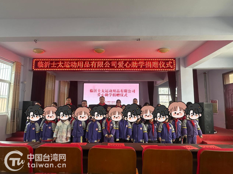 中国台湾网2月27日讯 2月25日,山东临沂市郯城县台资企业临沂士太运动用品有限公司爱心助学资金捐赠活动仪式在高峰头镇中心小学举行。郯城县委统战部副部长、县台办主任、县侨办主任、县港澳办主任李润生出席活动,临沂士太运动用品有限公司负责人、高峰头镇党委、镇中心小学部分师生及家长代表参加活动。