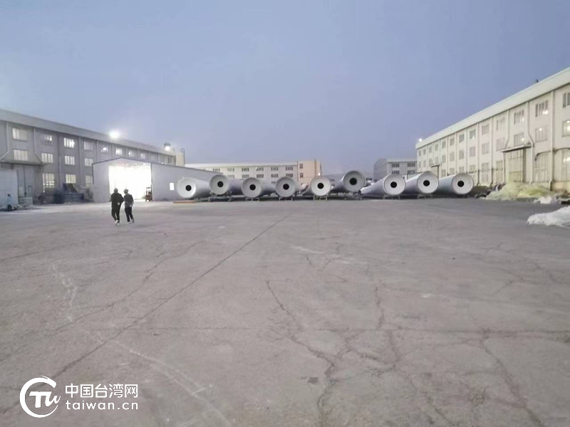 红叶风电设备车间外堆场。(中国台湾网发)