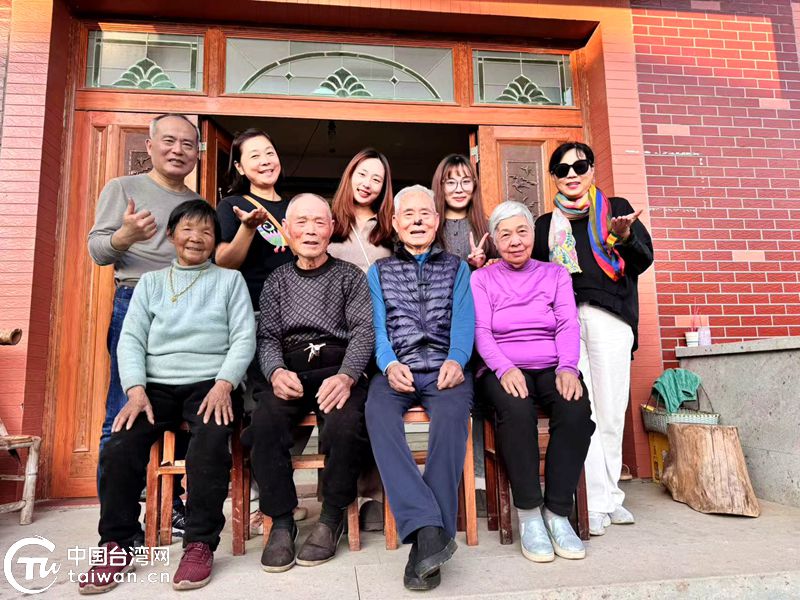90岁高龄的旅台同乡楼启龙带着老中青3代7位家人回到尖山镇楼界村与大陆家人探亲团聚。(中国台湾网发)