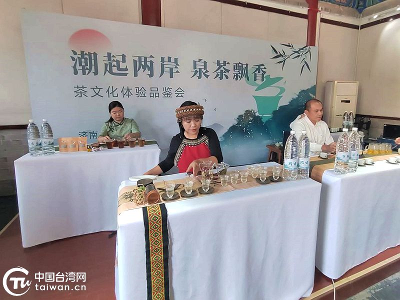 在明伦堂内举办的“潮起两岸 泉茶飘香”茶文化体验品鉴会现场茶香四溢,两岸嘉宾品鉴佳茗、共叙情谊。台湾茶艺师以济南四大名泉之水冲泡台湾特色茶品:趵突泉的清冽激荡出原野山绿茶的旷远山韵,黑虎泉的浑厚包裹着花草茶的馥郁芬芳,百脉泉的甘醇浸润出梨山高冷茶的岩骨花香,漱玉泉的灵动则与冻顶乌龙的兰香蜜韵相映成趣。