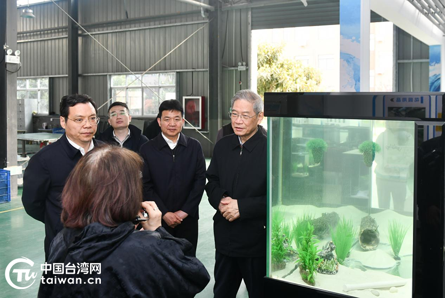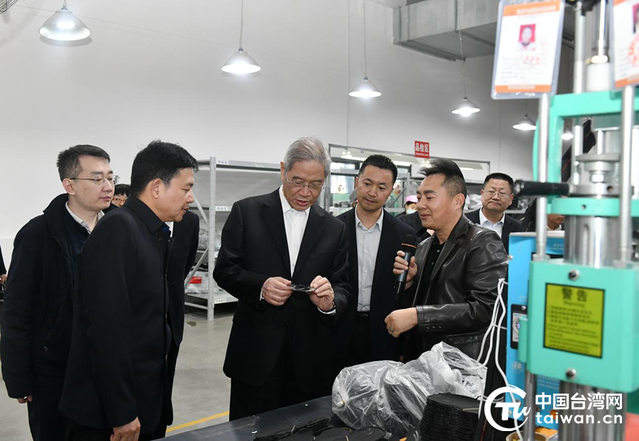 海峡两岸关系协会会长张志军在驻马店市市长李跃勇、驻马店市委统战部部长李全喜的陪同下调研台资企业英光电器。(中国台湾网发)