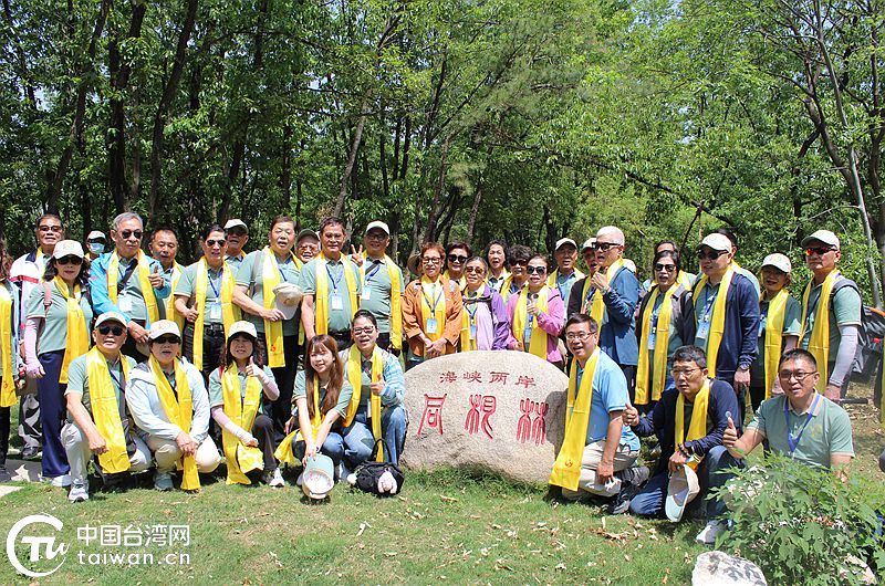 参加开班仪式的学员在谒祖广场神农大殿后的同根林合影。(中国台湾网发)