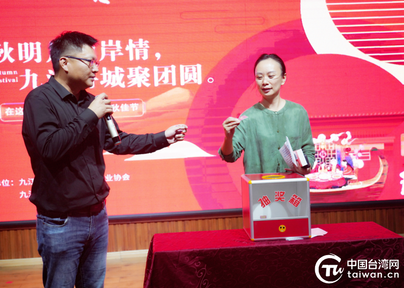 苏俊任在九江市台商协会中秋晚会担任主持人。(受访者供图)