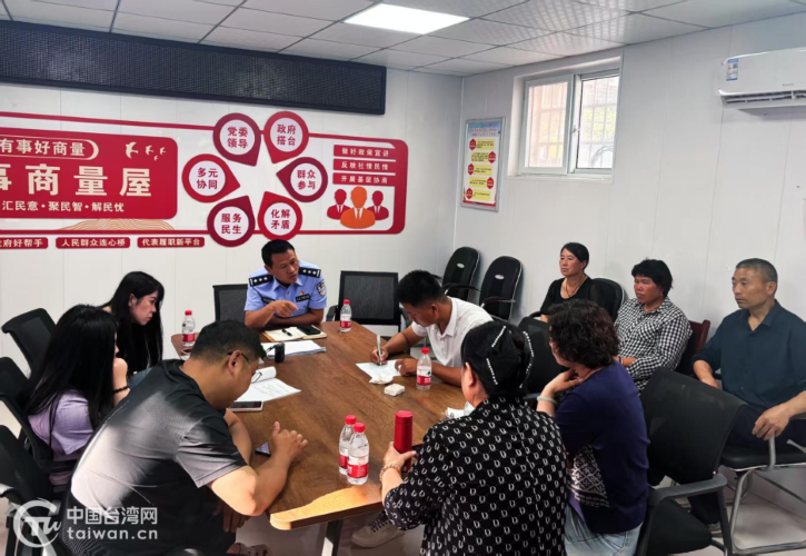 西门社区负责人、台属薛女士、小区业主代表、垃圾清运站负责人齐聚调解现场。(中国台湾网发)