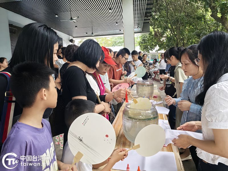 台胞体验非遗漆扇制作。(中国台湾网发)