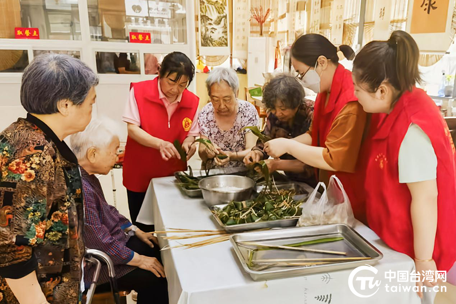 活动现场,社区工作人员提前准备好糯米、红枣、粽叶等材料,台胞台属与居民围坐在一起,折粽叶、填糯米、裹馅料、扎绳结……大家手法娴熟又互相切磋,欢声笑语不断。