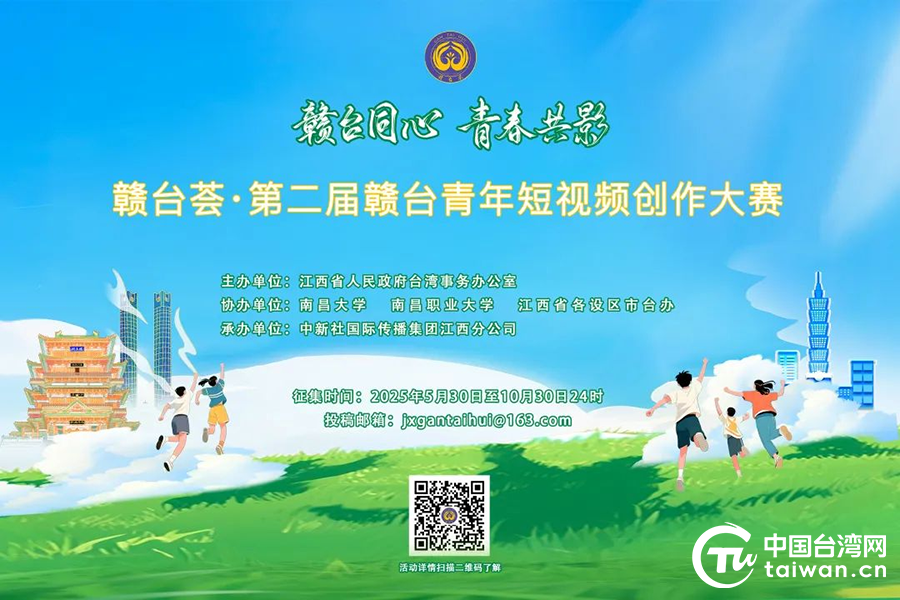 中国台湾网5月30日讯 为持续深化赣台两地青年文化交流,推动两岸青年以创新形式展现文化融合与社会发展成果,江西省人民政府台湾事务办公室举办“赣台荟·第二届赣台青年短视频创作大赛”,通过组织赣台青年以拍摄短视频的形式,展示江西自然风光、人文历史和台胞台青在赣学习、生活、就业、创业的鲜活故事,传递两岸青年共同的家国情怀与时代精神。