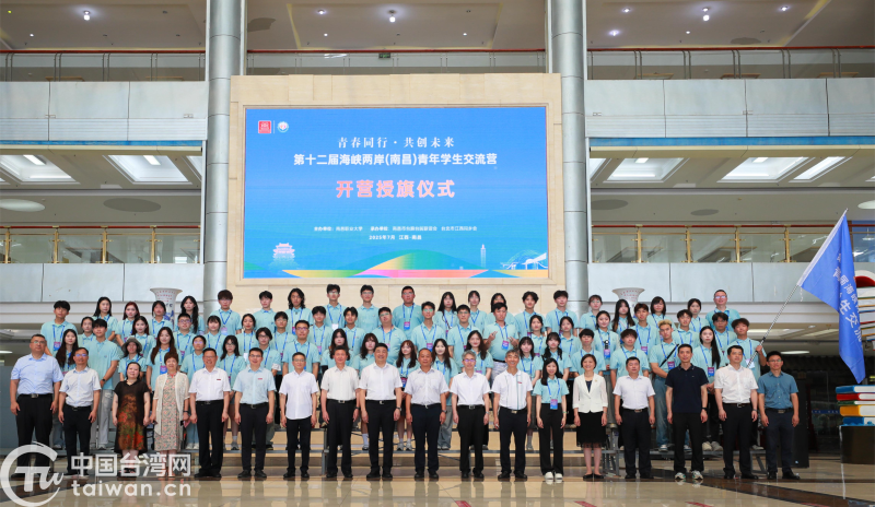 第十二届海峡两岸(南昌)青年学生交流营开营授旗仪式。(中国台湾网发)