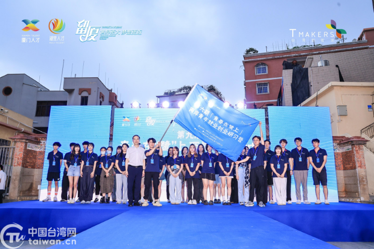 湖里区委副书记潘敏毅为本次两岸青年就业创业研习营授旗。连续举办9届的“青春在‘鹭’上”系列两岸青年交流活动,包括海峡两岸青年就业创业研习营、两岸文创市集、两岸青年Party等特色活动,累计吸引近7万人次参与,已然成为具有一定影响力的对台活动品牌。