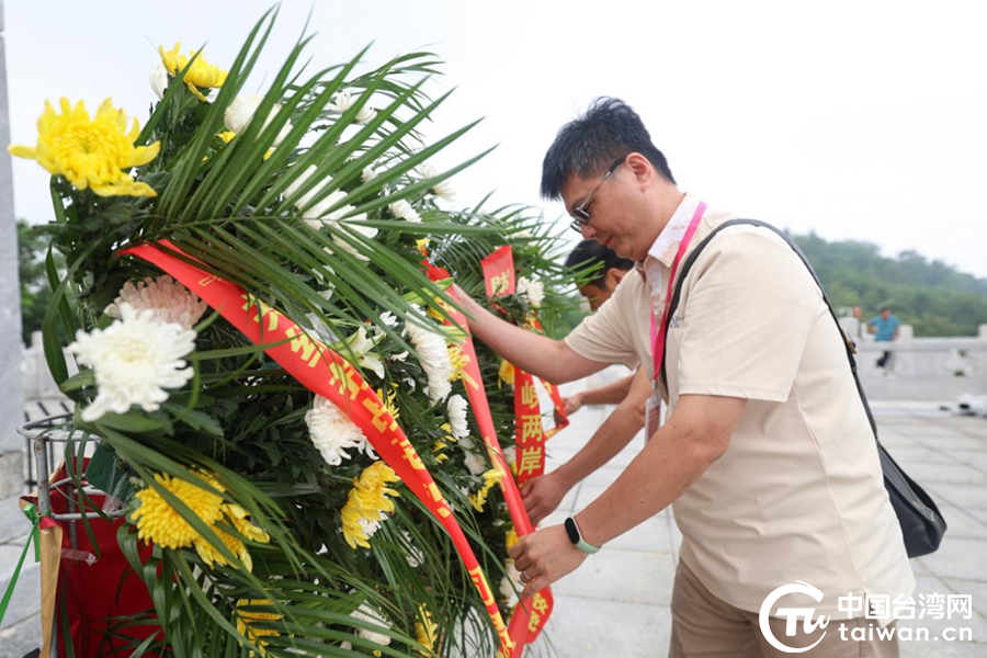 台湾师生代表团敬献花篮、鞠躬默哀。(中国台湾网发)