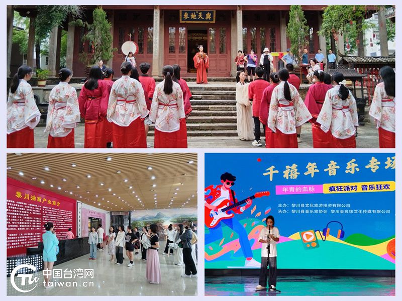 台湾嘉宾来到黎川油画创意产业园,穿梭在纵横交错的画家工作室间,仿佛踏入了一个色彩斑斓的艺术世界;在孔庙,赣台青少年穿着传统服饰,共同诵读论语;走进古城老街,大家观看千禧年音乐专场演出,赣台青年轮流上台进行音乐表演交流。丰富的互动活动让台湾青年感动不已,台湾学生林同学在音乐会上参与表演后激动地说:“音乐会的主创人员非常热情,当得知我们来自台湾后,不仅为我们演唱了台湾流行歌曲,也给了我一次难得的机会,为大陆同胞献上一曲,能够以音乐为媒结交朋友让我非常开心。”