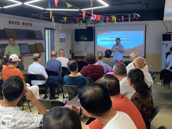 中国台湾网8月4日讯 8月1日,开封市禹王台区台办联合三里堡街道组织开展“军民融合鱼水情 两岸邻里话同心”主题联谊活动,辖区台胞台属、退役军人、少先队员和社区居民代表齐聚一堂,共庆佳节、共话初心、共叙同心。