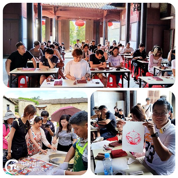 台湾青年们体验雕版印刷。(中国台湾网发)