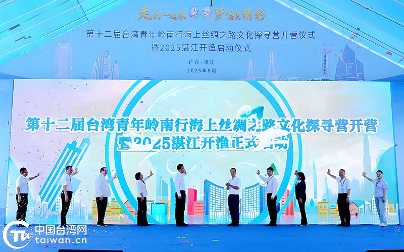 中国台湾网8月19日讯 2025年8月16日,第十二届台湾青年岭南行海上丝绸之路文化探寻营开营仪式暨2025湛江开渔启动仪式在湛江奥林匹克体育中心举行。广东省海峡两岸交流促进会副会长潘剑勇,广东省农业农村厅总经济师郑志雄,湛江市委常委程凤英、副市长吴国雄、市政协副主席杨文光,中国国民党前秘书长李乾龙等嘉宾及两岸青年等300多人齐聚一堂,共同开启此次文化交流之旅。