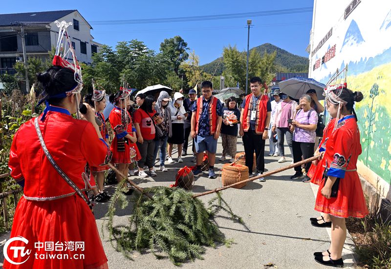 台青们参与竹垟畲族乡婚嫁表演互动。(中国台湾网发)