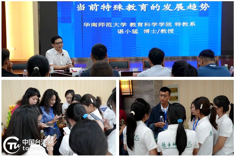开营现场,华南师范大学谌小猛教授以“当前特殊教育的发展趋势”为主题,为在场两岸师生带来了一场兼具理论深度与实践价值的专题讲座。在“两岸特殊教育发展经验交流会”上,南昌市特殊教育学校党委书记张俐,豫章师范学院左秋芳、黄存泉等教师,台湾铭传大学陈颖君教授等台方代表分别分享了两地特殊教育的发展成果。从大陆特殊教育体系的完善历程,到台湾融合教育的创新实践,双方在交流中碰撞思想,现场氛围热烈而融洽。