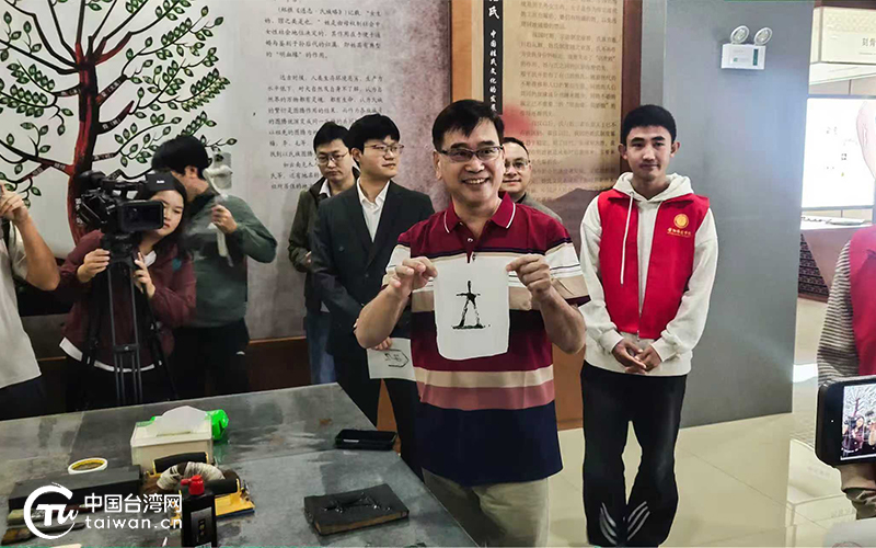 台湾青年代表参与姓氏拓印互动,以古朴拓印形式呈现于纸上。(中国台湾网发)