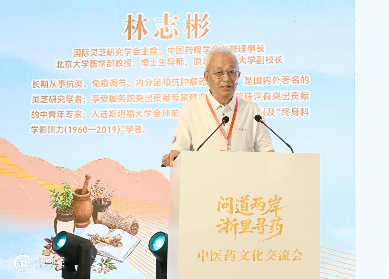 国际灵芝研究学会主席、中国药理学会名誉理事长、北京大学医学部教授、博士生导师,原北京医科大学副校长林志彬交流发言。(中国台湾网发)