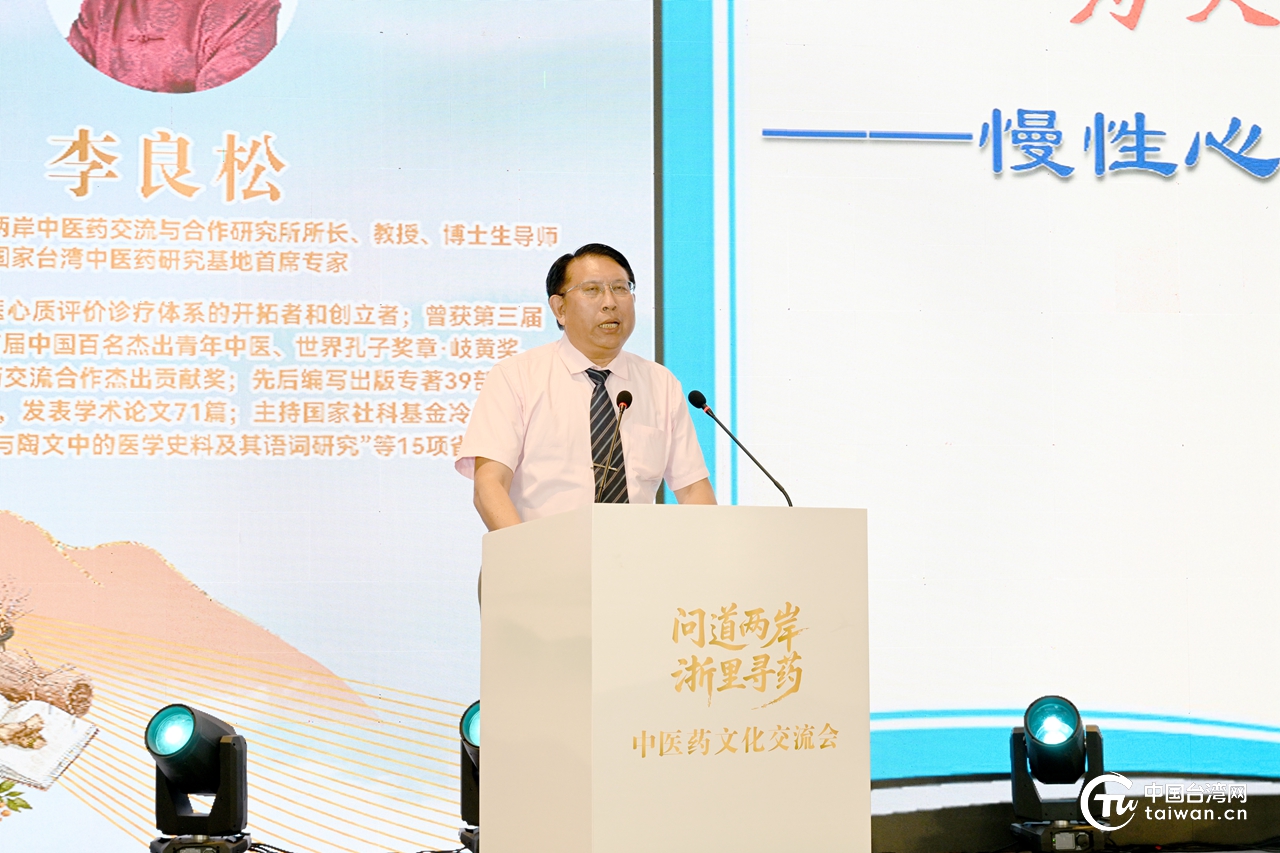 北京中医药大学海峡两岸中医药交流与合作研究所所长、教授、博士生导师,国家台湾中医药研究基地首席专家李良松交流发言。(中国台湾网发)