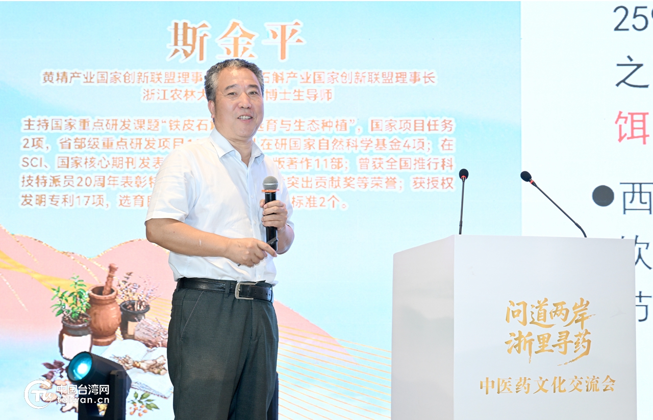 黄精产业国家创新联盟理事长,铁皮石斛产业国家创新联盟理事长,浙江农林大学教授、博士生导师斯金平交流发言。(中国台湾网发)