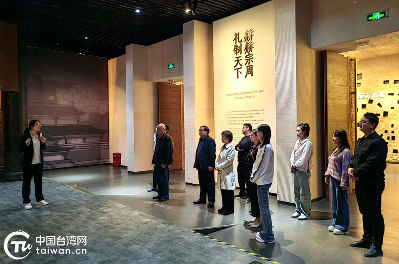 与会代表在陕西省对台交流基地——梁带村芮国遗址博物馆参观。(中国台湾网发)