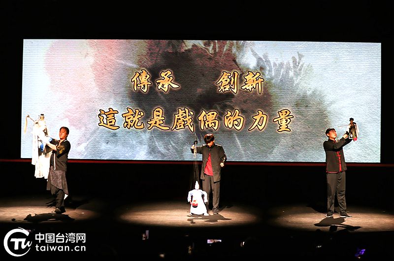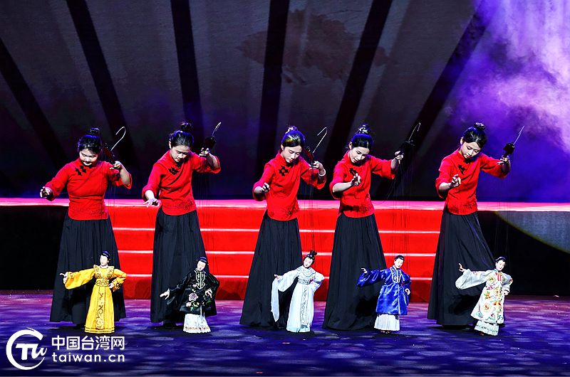 泉州提线木偶、掌中木偶与台湾霹雳布袋戏同台展演。(中国台湾网发)