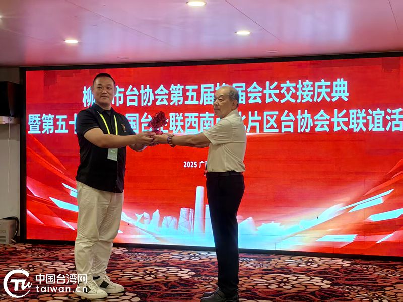 在柳州市台协会第五届换届会长交接仪式上,老会长与新会长双手相握,交换印信。新任会长陈盈智接过“接力棒”表示,将以“服务立会、创新强会、融合兴会”为目标,聚焦台企需求优化服务,深化柳台产业对接,团结带领全市台商融入新发展格局,为柳州高质量发展注入台企动能。