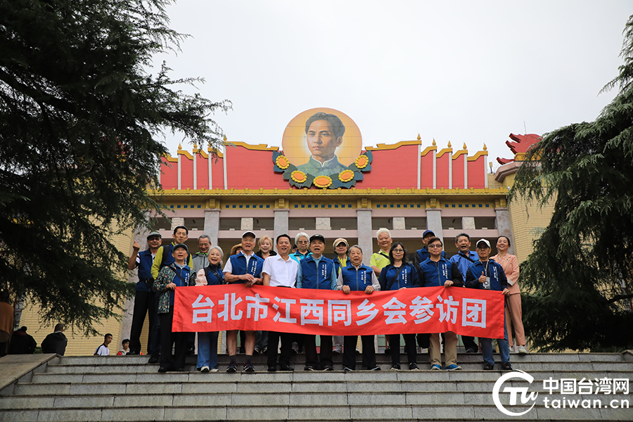 参访团在安源路矿工人运动纪念馆馆前合影(中国台湾网发)