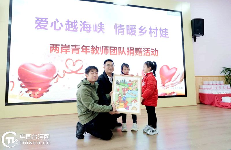 捐赠环节上,两岸青年教师团队将300套崭新的文具送到孩子们手中,小朋友们也用自己亲手绘制的画作作为“回赠礼物”。稚嫩的笔触里藏着童真与感恩,让在场的每一个人都感受到温暖。