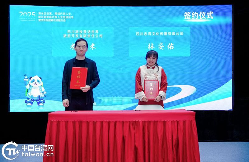 在项目签约仪式上,四川旅投漫话世界旅游开发有限责任公司与台企四川志育文化传播有限公司签署研学项目开发合作协议。研学项目联动熊猫基地、昭觉寺等周边资源构建文旅闭环,助力动漫城打造年轻消费“引力场”,加速天府国际动漫城“产学研”一体化基地成型。以研学为纽带,进一步深化两岸文化交流,提升区域动漫产业影响力。